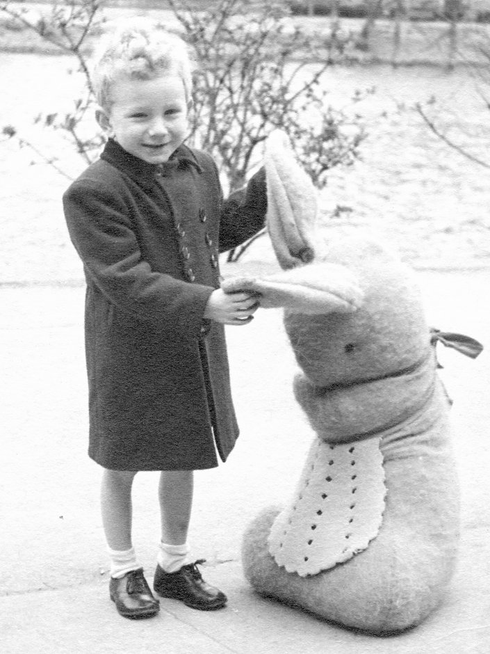Bert, Joan and puppy Bert with the rabbit